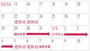 そこで年末の営業日・営業時間のお知らせです。